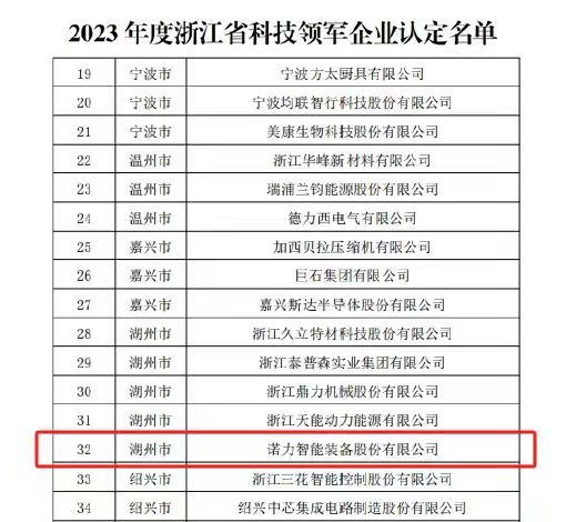近日,浙江省科学技术厅公布了关于2023年度浙江省“科技领军企业”名单。诺力智能榜上有名,彰显了在科技创新方面的硬核实力。