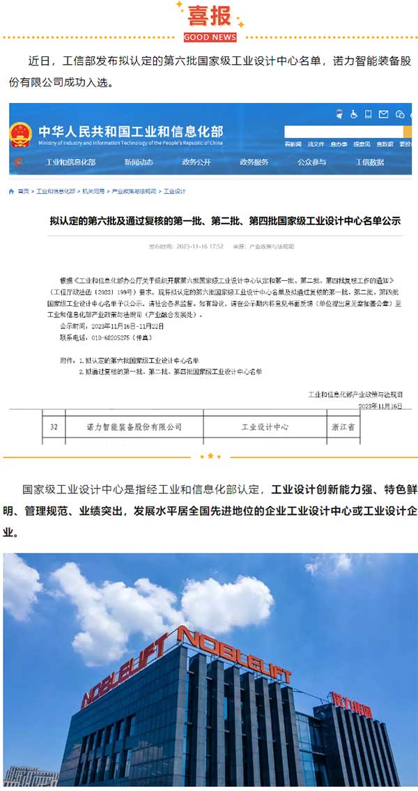 国家级荣誉+1丨诺力智能入选国家级工业设计中心名单
